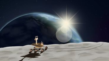 A space station built into an asteroid with space ships and colorful planets.